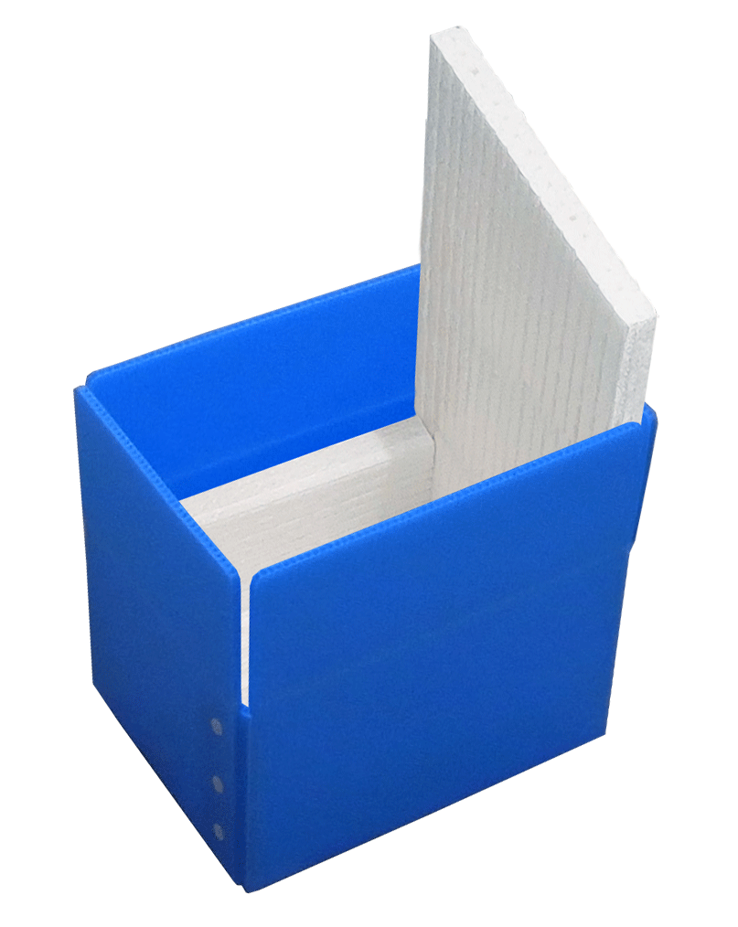 当社で販売している断熱緩衝材のアローエコをプライタBOXに合わせてカット、折加工をするだけで完成です。(カット、折加工を承ります)