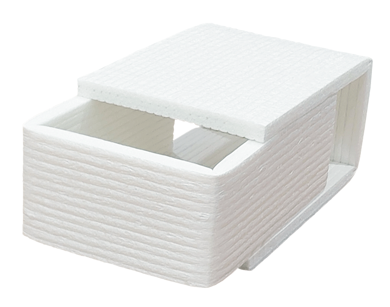 メリットは、小ロットでの製作が可能で、発泡スチロールのような高価な金型は不要である点です。(大きなサイズの箱の場合対応できないケースもございます)