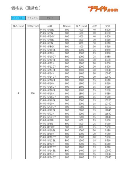 | 幅 (mm) | 長さ (mm) | 入数 (枚数) | カラー(通常色) | ||