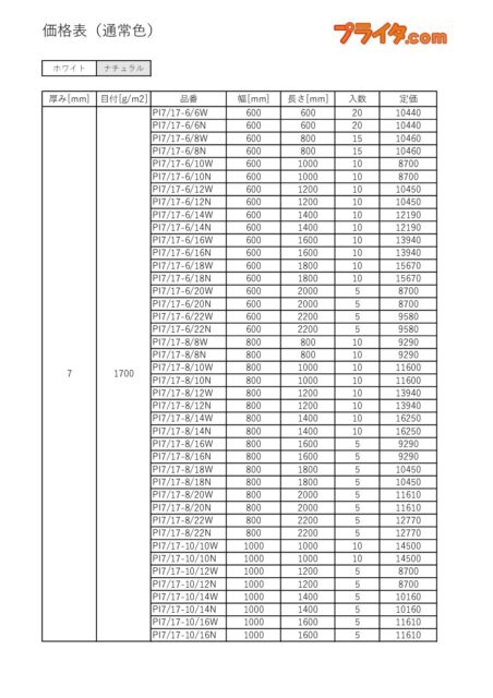 | 幅 (mm) | 長さ (mm) | 入数 (枚) | カラー(通常色) | |