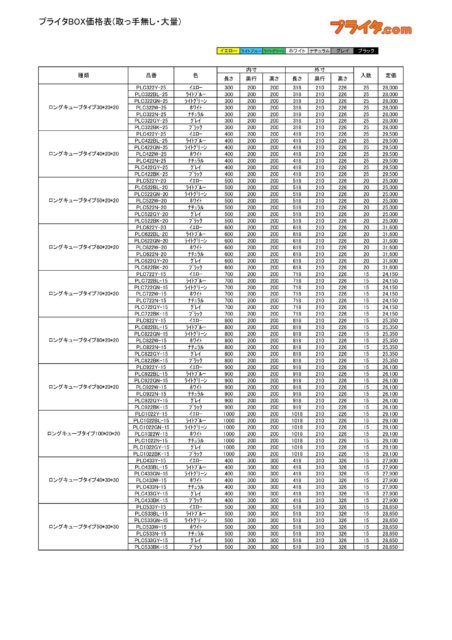 | 内寸(mm) | 外寸(mm) | 入数 (枚) | カラー | ||||||||||