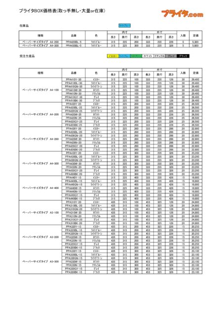 ※PPA420、PPA430のライトブルーは在庫品です。数量が多い場合は生産になる可能性がございます。