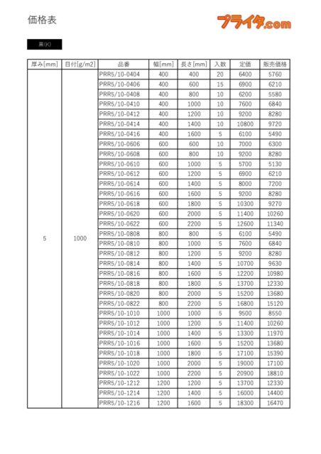 | 幅 (mm) | 長さ (mm) | 入数 (枚) | カラー |